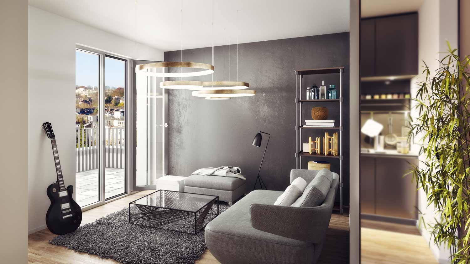 Zunächst müssen die Grundrisse optimal auf die Bewohner, hier die Studenten und jungen Akademiker, zugeschnitten sein. Dies bedeutet, auf begrenztem Raum den Eindruck von Großzügigkeit zu schaffen. Die Grundidee zur Verwirklichung dieser Anforderung ist die Schaffung eines offenen Wohn- und Essbereiches mit großzügiger Verglasung und vorgelagerter Terrasse oder Balkon. Außerdem gilt es, Küche sowie Badezimmer so in den Grundriss zu integrieren, dass die Großzügigkeit der Wohnung nicht verloren geht.