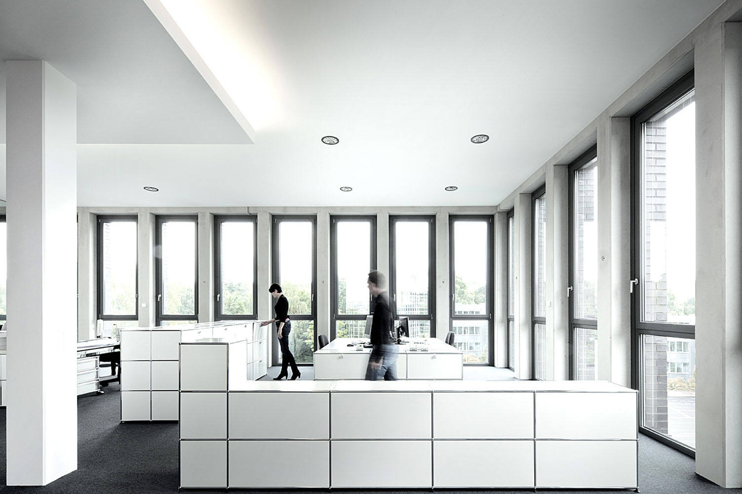 Stahlbetonfundamentplatte, Untergeschoss komplett aus wasserundurchlässigem Stahlbeton, Erschließungskern mit Treppenhaus und Aufzugsanlage aus Ortbeton mit Sichtbetonoberfläche, Stützen geschossweise als Stahlbetonfertigteile, Stahlbetonmassivdecken mit Betonkerntemperierung, Wärmeversorgung über Geothermie und Wärmepumpe, mechanische Be- und Entlüftung mit Wärmerückgewinnung.