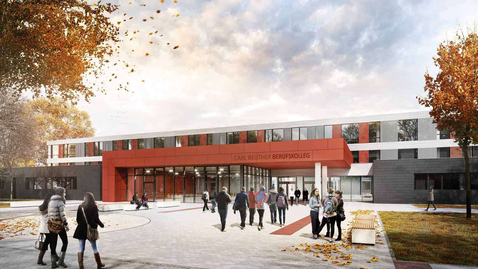 Wegen Problemen im Brandschutz sowie konstruktiver und energetischer Mängel hat sich der Rhein-Sieg- Kreis entschlossen, das Gebäude des Carl-Reuther-Berufskollegs durchgreifend zu sanieren. Die Variante eines Neubaus wurde aus wirtschaftlichen Gründen verworfen.