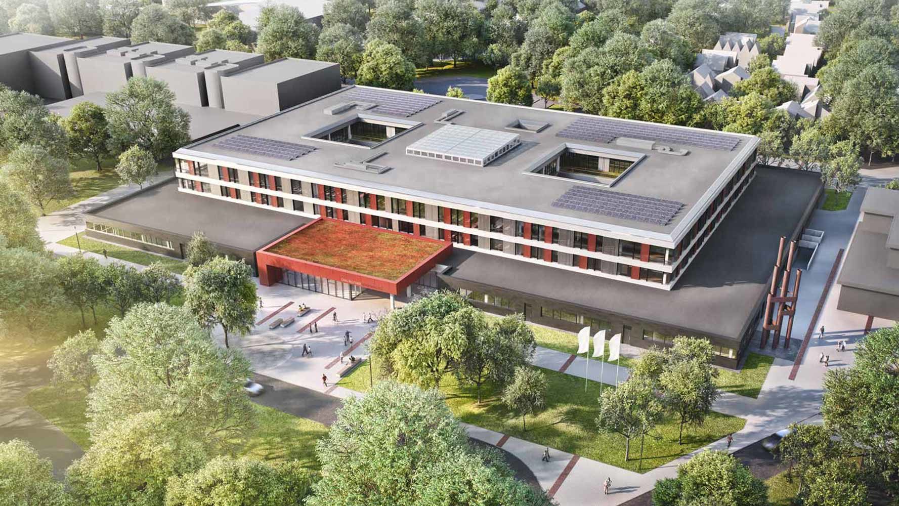 Die Baumaßnahme erfolgt bei laufendem Betrieb der direkt angrenzenden Schulen.
