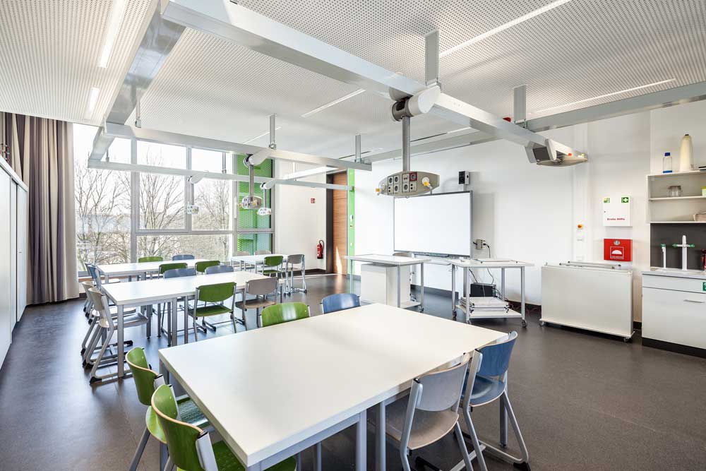 Die Durchführung der Baumaßnahmen erfolgte bei laufendem Schulbetrieb der benachbarten Schultrakte.