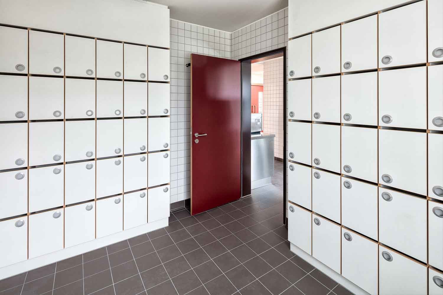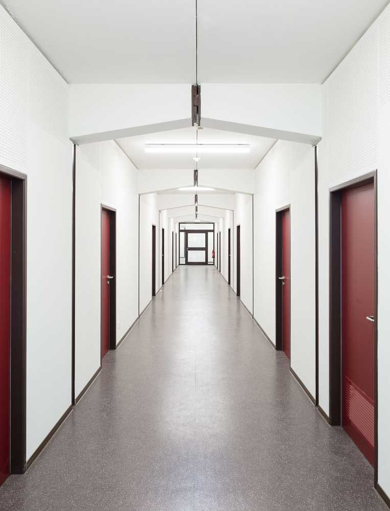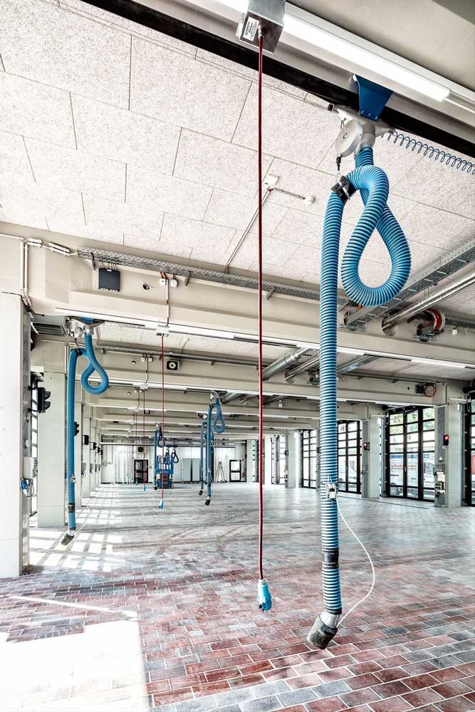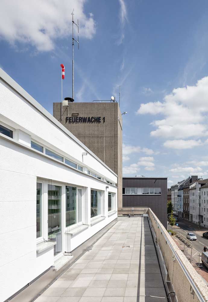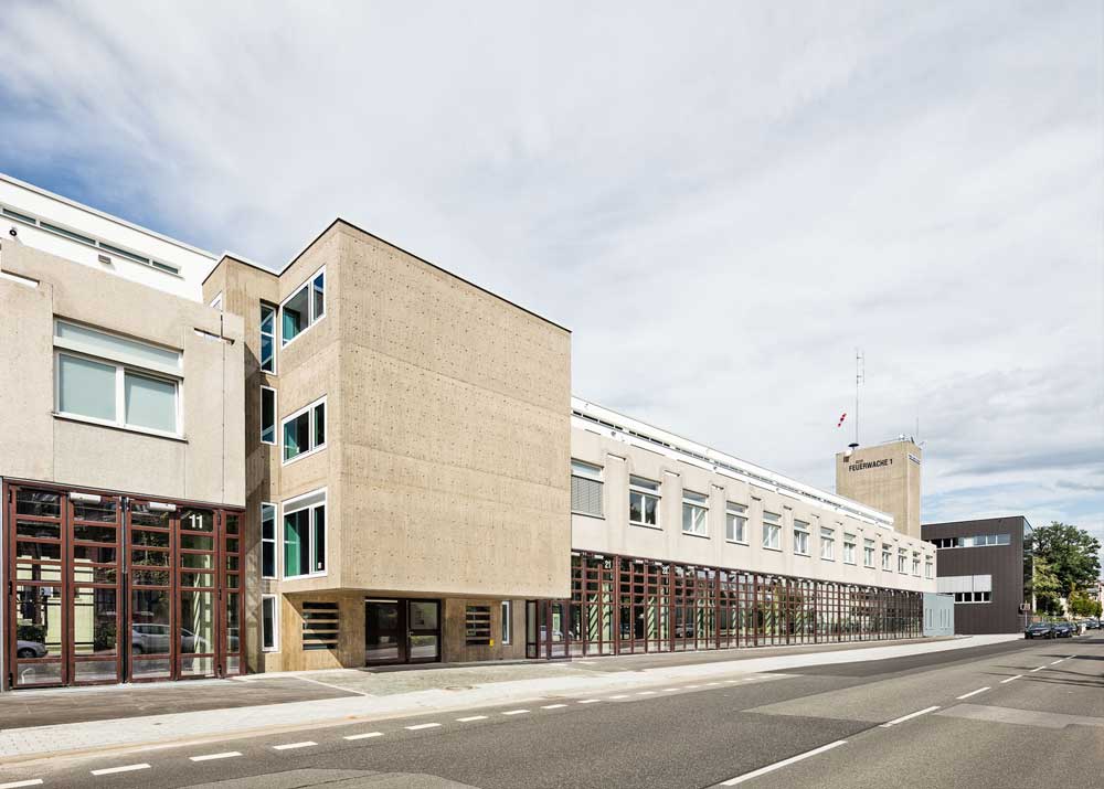 In enger Abstimmung mit der Denkmalbehörde wurde das Gebäude entsprechend der heutigen Anforderungen an eine zukunftsorientierte Feuer- und Rettungswache angepasst. Hierfür wurden die Funktionen im Grundriss neu geordnet und optimiert und das Gebäude wurde um die Flächen für eine Atemschutzwerkstatt erweitert. Durch den Einbau eines Aufzugs wird die Barrierefreiheit über alle Geschosse gewährleistet. Im 2. Obergeschoss erfolgte der Einbau einer Großküche mit Kantine und eines Schulungsraumes.