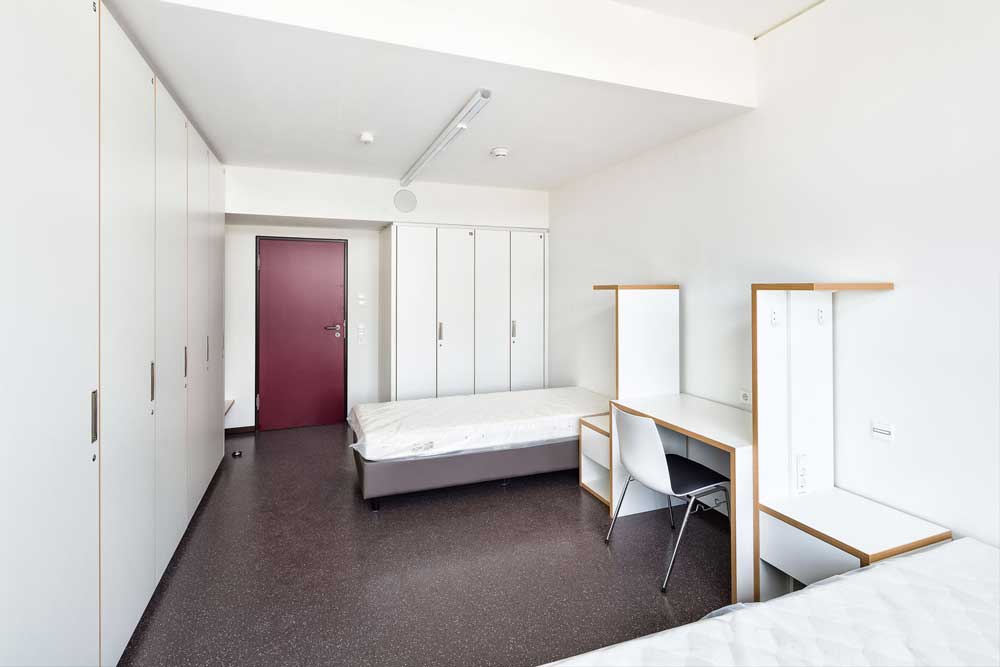 Die Baumaßnahme umfasste die energetische Sanierung der Gebäudehülle, die Instandsetzung der Beton-Fertigteilfassaden, Maßnahmen zur Erfüllung heutiger Brandschutzanforderungen und die komplette Erneuerung der Haustechnik.