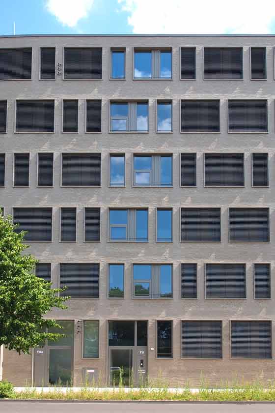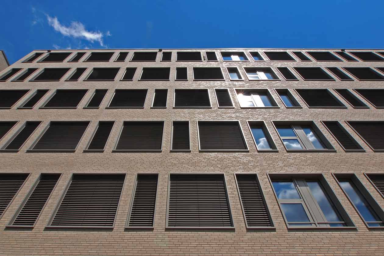 Die Kubatur folgt den Vorgaben des Bebauungsplans und sieht eine Blockrandbebauung mit 5 bzw. 6 Geschossen vor. Durch die Rückstaffelung auf vier Geschosse in der Lichtstraße wird ein harmonischer Anschluss an die vorhandene Bebauung erreicht. Mit der späteren Realisierung des 2. Bauabschnittes wird der Blockrand komplettiert. Gemeinsam mit den Gärten der bestehenden Bebauung bildet der Innenhof einen „grünen Kern“ innerhalb der Blockrandbebauung. Dieser kann im Erdgeschoss von den Kantinenbesuchern und beim Blick aus den Obergeschossen von allen Mitarbeitern erlebt werden.