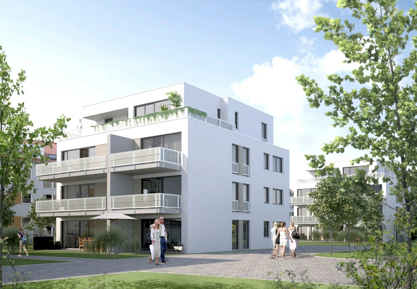 Dieses neue Wohnquartier ist in Köln-Dellbrück realisiert. Das Gesamtprojekt besteht aus 5 Gebäuden mit jeweils einem Hauseingang und insgesamt 35 Wohneinheiten. Die PKW-Stellplätze sind oberirdisch dezentral auf dem Grundstück vorgesehen. Die Mehrfamilienhäuser sind in massiver Bauweise erstellt und bestehen aus drei Vollgeschossen und einem Staffelgeschoss. Zudem sind die Häuser unterkellert.