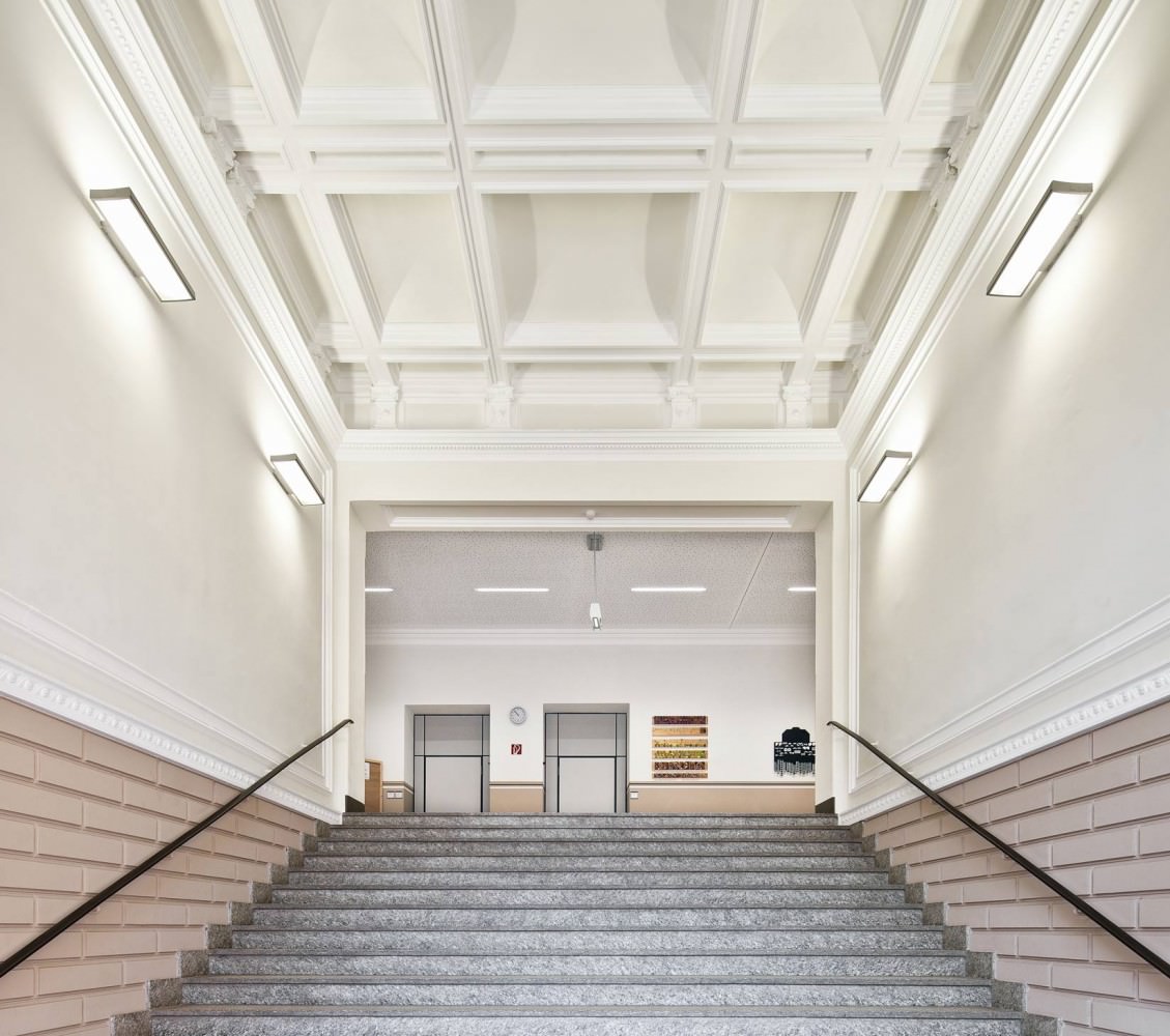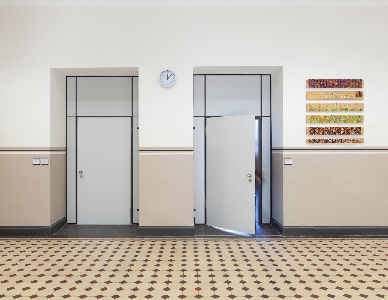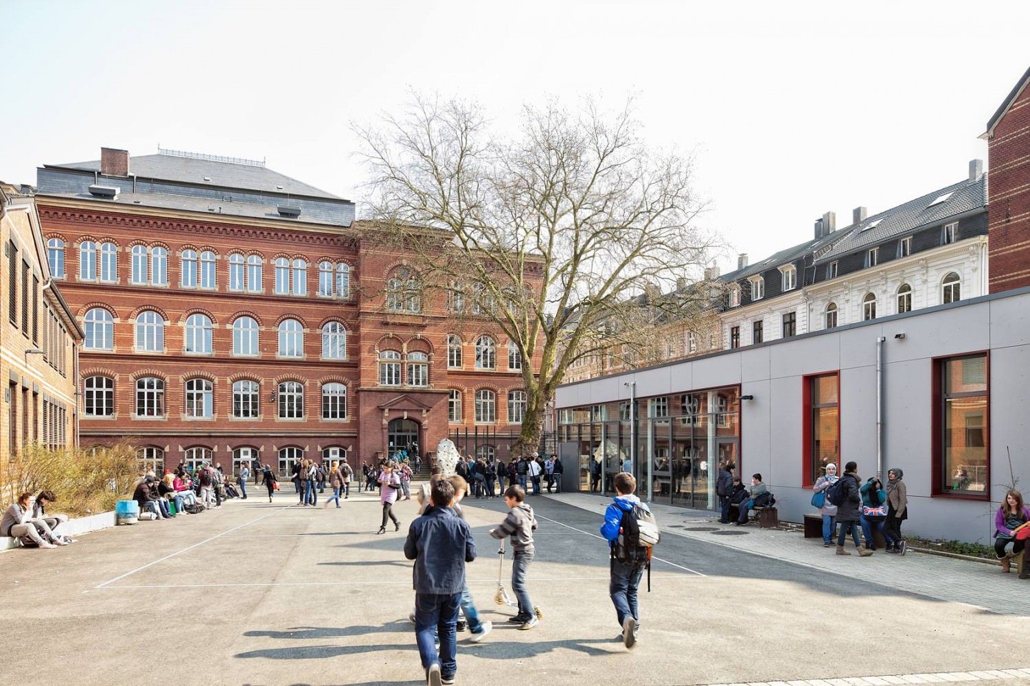 Im Rahmen dieser Maßnahmen gelang es, die vorhandene historische Bausubstanz wieder freizulegen und behutsam zu restaurieren. Um den Betrieb als Ganztagesschule zu ermöglichen, wurde das Ensemble zudem um Neubauten für eine Mensa und zusätzliche Klassenräume erweitert, die in reizvollem Kontrast zu den historischen Gebäuden stehen.
